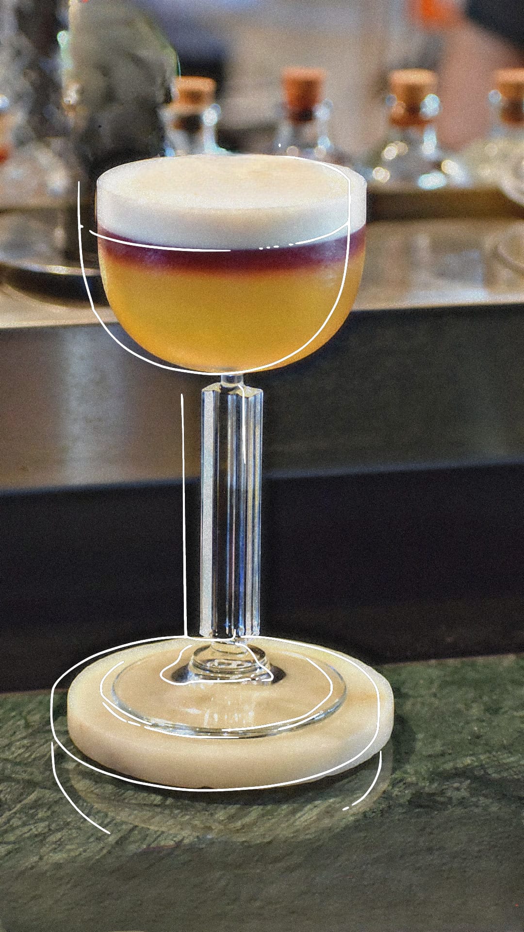 The signature cocktail presented for the IBA final was ‘The dream of the Venezuelan pioneer’, a cocktail based on Rum, Blend Toasted Corn, Salted Rucola Solution, Liqueur Amara, Citrus, Chuncho, Carrot & Salted Cacao Foam